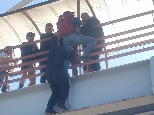 Los uniformados lograron disuadirlo y uno de los oficiales brincó a la parte de afuera del puente peatonal para ayudarlo a subir al puente, bajarlo y ser revisado por personal médico, así como canalizarlo a apoyo psicológico.