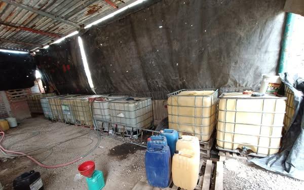 En plena coordinación, las fuerzas del orden se trasladaron al sitio delimitado con tarimas, un zaguán metálico color negro como acceso, y en el interior se localizaron bidones de mil litros de capacidad que contenían el hidrocarburo, además inspeccionaron un vehículo marca International, color blanco con rojo, modificado que en su área de carga tenía una cisterna metálica de fabricación artesanal de la cual salía gasolina.