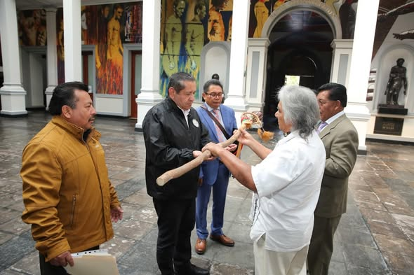 En una de las audiencias, entregaron un Bastón de Mando al Magistrado Macedo García de manos de Enrique Montalvo Sánchez, presidente del Movimiento Social “Sentimientos por la Transformación del Estado de México”.