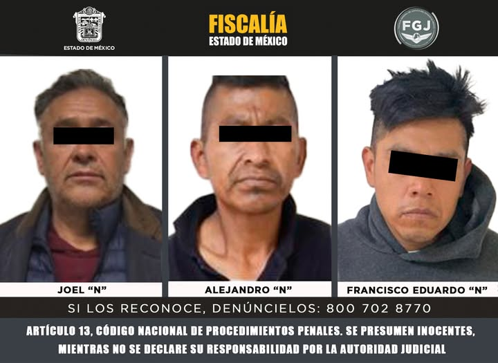 Chicoloapan, México. Tres sujetos identificados como Francisco Eduardo “N”, Alejandro “N” y Joel “N”, fueron vinculados a proceso luego de que la Fiscalía General de Justicia del Estado de México (FGJEM) acreditó ante la Autoridad Judicial su posible participación en el delito de homicidio calificado.
