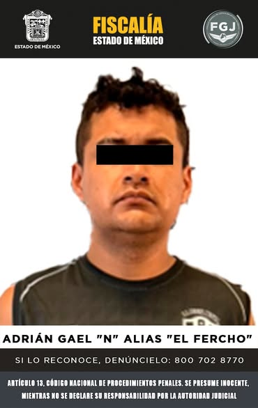 Con la información recabada por la Fiscalía de Justicia mexiquense, fue posible establecer la identidad de uno de los probables participantes de este hecho delictivo, por lo que fue solicitada al Juez una orden de aprehensión en contra de Adrián Gael “N” alias “El Fercho”.