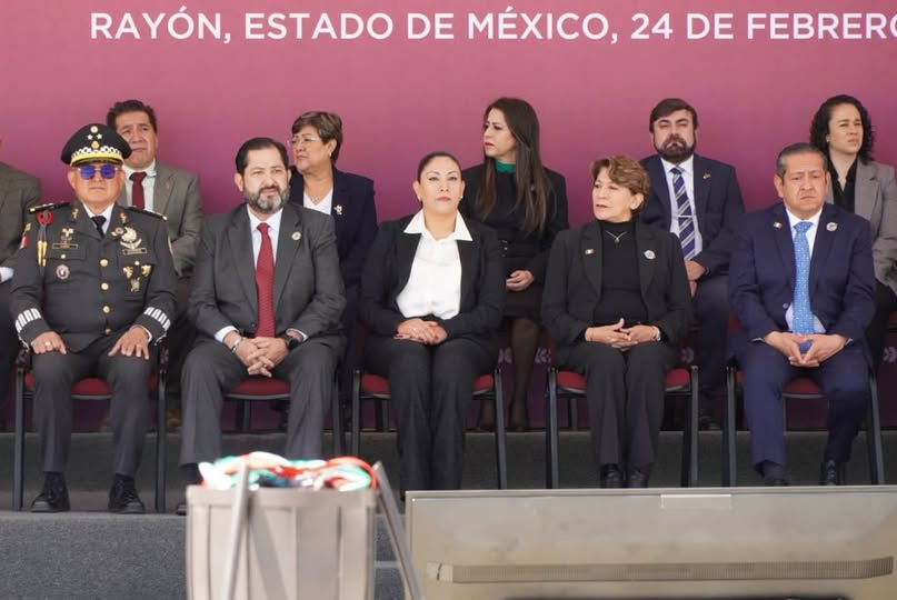 Integrantes de la LXII Legislatura del Estado de México, encabezados por el diputado José Francisco Vázquez Rodríguez, presidente de la Junta de Coordinación Política, y la diputada Martha Azucena Camacho Reynoso, presidenta de la Directiva, participaron en la ceremonia conmemorativa del Día de la Bandera (24 de febrero), presidida por la gobernadora Delfina Gómez Álvarez.
