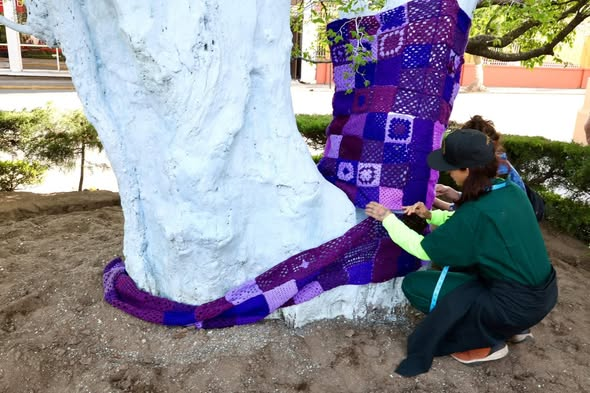 También se llevó a cabo “Abrazamos el árbol de la mora. Tejamos redes universitarias”, dinámica en la que se reunieron más de mil 300 cuadros de tejido en color violeta.