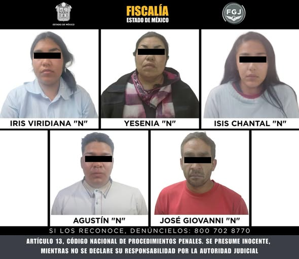 La Paz, México. La Fiscalía General de Justicia del Estado de México obtuvo de una autoridad judicial la vinculación a proceso en contra de Isis Chantal “N”, Yesenia “N”, Iris Viridiana “N”, José Giovanni “N” y Agustín “N” por su presunta responsabilidad en el delito de homicidio en agravio de una víctima.