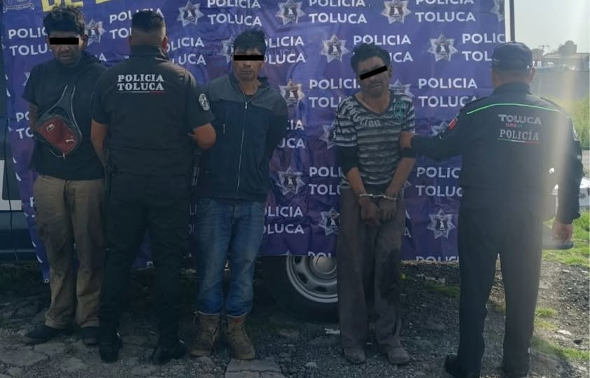 Los detenidos, identificados como Alan “N”, Sixto “N” y Rigoberto “N”, fueron puestos a disposición de la Fiscalía estatal con sede en Metepec, junto con los artículos recuperados.