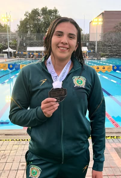 Más tarde, en la alberca, Verónica Vega Vidal se adjudicó el tercer lugar en la prueba de los 800 metros estilo libre, tras una sólida competencia que le permitió colgarse el bronce y otorgar la sexta presea para la UAEMéx en este certamen.